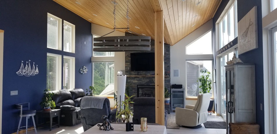 This project entailed converting a waterfront lot from a campsite to a full time residence that takes advantage of fabulous northern views. Architectural Design challenges included: 1) access to the northern exposure view from every room, 2) bringing in light from the southern street exposure, while maintaining privacy 3) a narrow footprint in order to meet flood plain restrictions.