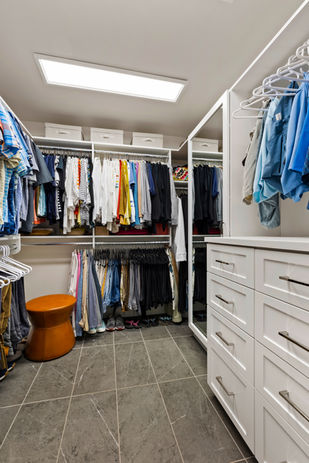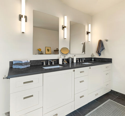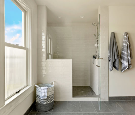 After moving to their 120-year-old farmhouse full time, these homeowners found that they no longer wanted to share a single bathroom for 5 bedrooms. Our brief was to add a bathroom without expanding the footprint of the home, and to create additional storage for clothing, books and modern “conveniences” – like, you know, a TV!
