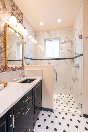 This beautiful master suite takes you directly to Paris from downtown Poulsbo! Our client wanted a fresh update to their master suite that would allow for aging in place down the road. We accommodated this by designing a no-curb shower entry so that it could be accessed easily as motion becomes limited. We added grab bars that didn’t detract from the fabulous feel of a Paris hotel suite. We created a generous, open layout for the bathroom and closet allowing for the possibility of life with limited mobility. Aging in place with style!